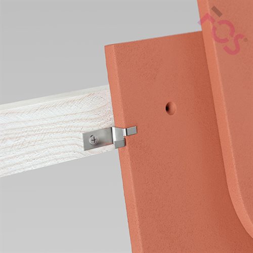 Für Sonderlatten, für die keine passende 415c® vorrätig ist, empfiehlt sich die Schraubvariante 415®. Diese wird zwischen zwei Biber an der Dachlatte verschraubt und ist für unterschiedlich dicke Biber erhältlich. Mit dem FOS ClipCHECK® ist die passende Klammerzuordnung unter Angabe des Einsatzbereiches, der Montageart, des Bibers und der Lattung schnell zu ermitteln. Rostfreier Edelstahl in der Qualität 1.4301 (A2) oder ZIAL® (Zink-Aluminium) beschichtete Oberflächen gewährleisten die lange Haltbarkeit der Biberschwanzklammer. Die 415® wird in Verpackungseinheiten von je 500 Stück angeboten.