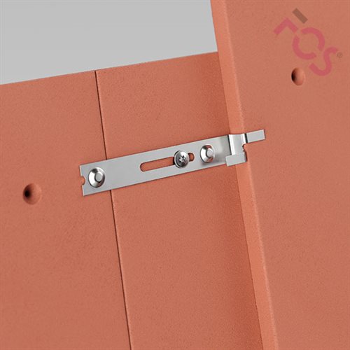 Die Biberschwanzklammer 415®b sichert das Kronengebinde unter dem First. Die Befestigung des letzten Deckgebindes unter dem First ist verbindlich, wenn eine Verklammerung im Firstbereich nach den Fachregeln vorgeschrieben ist. Jeder Biber dieser Reihe ist dann zu befestigen. Mit der 415®b profitieren Sie von der Möglichkeit, die Anforderungen der Fachregel zu erfüllen. Zwei Wölbungen verhindern das Kippeln der Deckschicht auf dem Schraubenkopf und sorgen für eine ebene Auflage der letzten Biberreihe.