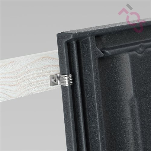 Die Seitenfalzklammer 436 ist eine Klammer zum Anschrauben vor die Traglattung. Sie dient auch zur Befestigung des Traufbereichs.