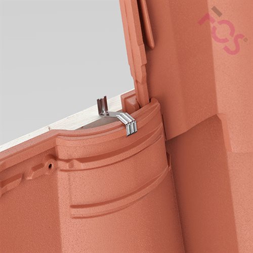 Head clips 455 guarantee a high resistance against wind uplift loads when fixing southern Roman tiles on the roof. The jagged drive-in tip makes it easier to drive into the batten. The beading optimisation provides a strong hold. The 455 will fix three tiles in the four-tile corner and is placed at the highest point of the tile. The clip can be used for left and right-hand roof tiles where the head covers the side fold.