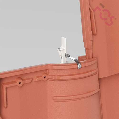 FOS ClipCHECK® determines the perfect clip by entering the area of application, the type of mounting, the roof tile and the batten. Stainless steel BS 304 S 15 and the PBT Celanex guarantee long durability of the sidelock clip. The Multiblock 750 is offered in small packaging units of 100 pieces each.