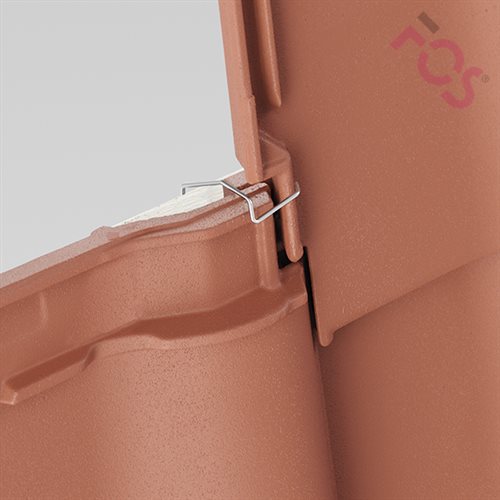 The 492®-2 is the only clip that provides a hook to fix both the head and the side fold of roof tiles without a fourfold covering in the 4-tile corner.